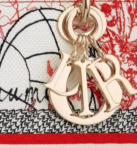 From the “Dioramour” capsule collection, the “Lady D-Lite” bag combines classic elegance with Dior modernity. Inspired by the artist Pietro Ruffo, it is embroidered entirely with a red and white “D-Royaume d’Amour” motif. The “D.I.O.R.” features the “CHRISTIAN DIOR” signature on the front and a voluminous pale gold-tone metal. Charms complement the attractive silhouette. The wide, reversible embroidered shoulder strap can be removed and can be used as a shoulder bag or crossbody bag as well as a handbag. It is a medium-sized model that can be enjoyed in combination with other items of “Dior Amour”.
